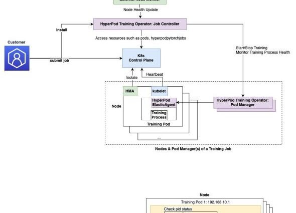 • Unhealthy training node detection and job restart – The HyperPod training operator is fully integrated with the HyperPod EKS cluster resiliency features, helping restart jobs or training processes due to bad nodes and hardware issues in ML workloads. This reduces the need to self-manage job recovery solutions.