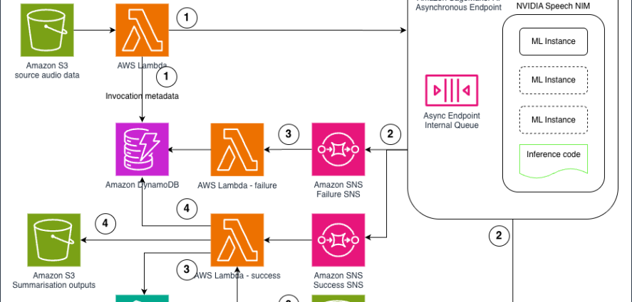 The integration of powerful NVIDIA speech AI technologies with AWS cloud infrastructure creates a comprehensive solution for large-scale audio processing. By combining Parakeet ASR’s industry-leading accuracy and speed with NVIDIA Riva’s optimized deployment framework on the Amazon SageMaker asynchronous inference pipeline, organizations can achieve both high-performance speech recognition and cost-effective scaling. The solution leverages the managed services of AWS (SageMaker AI, Lambda, S3, and Bedrock) to create an automated, scalable pipeline for processing audio content. With features like auto scaling to zero, comprehensive error handling, and real-time monitoring through DynamoDB, organizations can focus on extracting business value from their audio content rather than managing infrastructure complexity. Whether processing customer service calls, meeting recordings, or media content, this architecture delivers reliable, efficient, and cost-effective audio processing capabilities. To experience the full potential of this solution, we encourage you to explore the solution and reach out to us if you have any specific business requirements and would like to customise the solution for your use case.